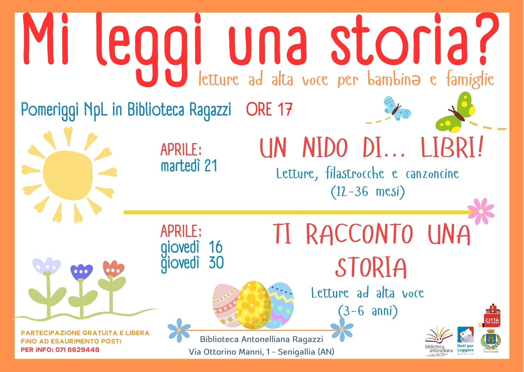 MI LEGGI UNA STORIA? letture ad alta voce per bambini/e e famiglie Pomeriggi NpL in Biblioteca Ragazzi ORE 17